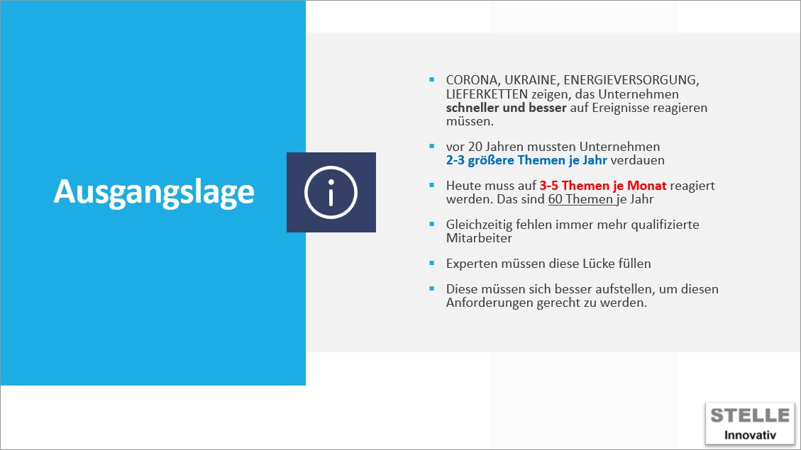 Präsentation des Vortrages "Unternehmen müssen beweglicher werden" auf dem 17. Expertenringtreffen Kreise PB-SO-HSK des BVMW am 25.04.22..